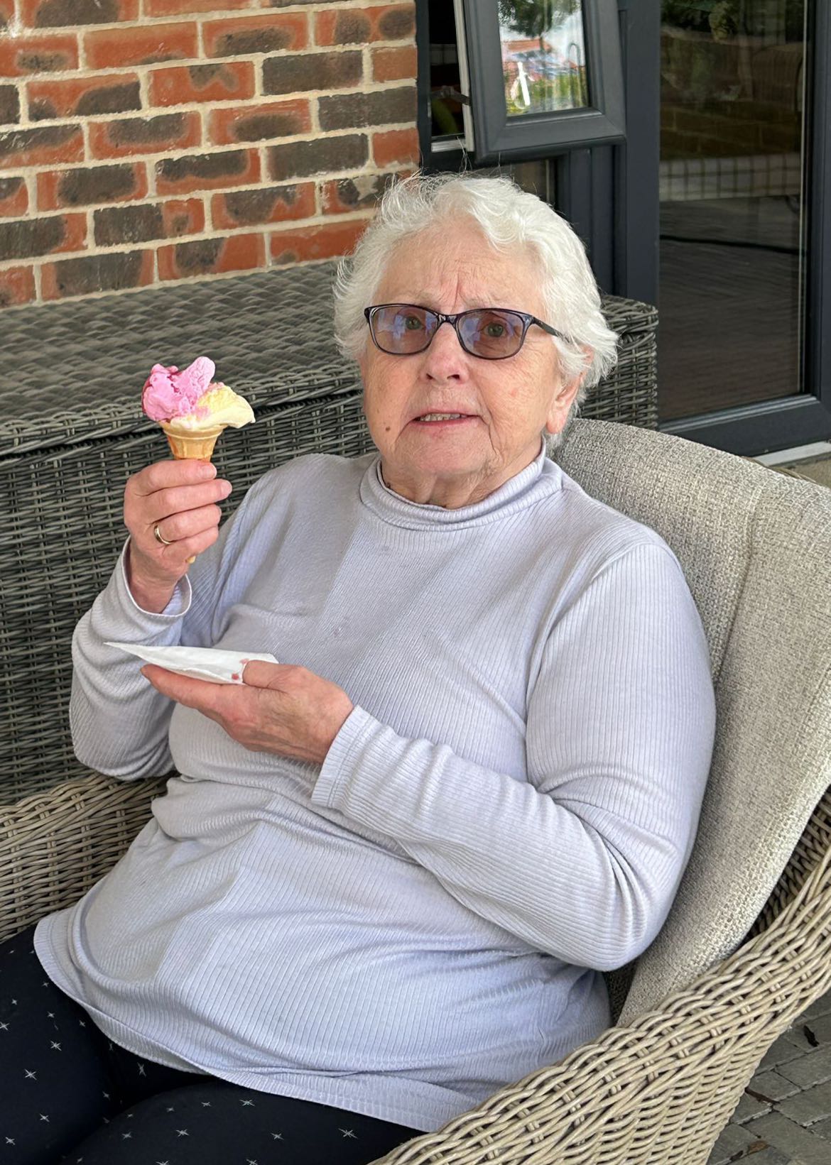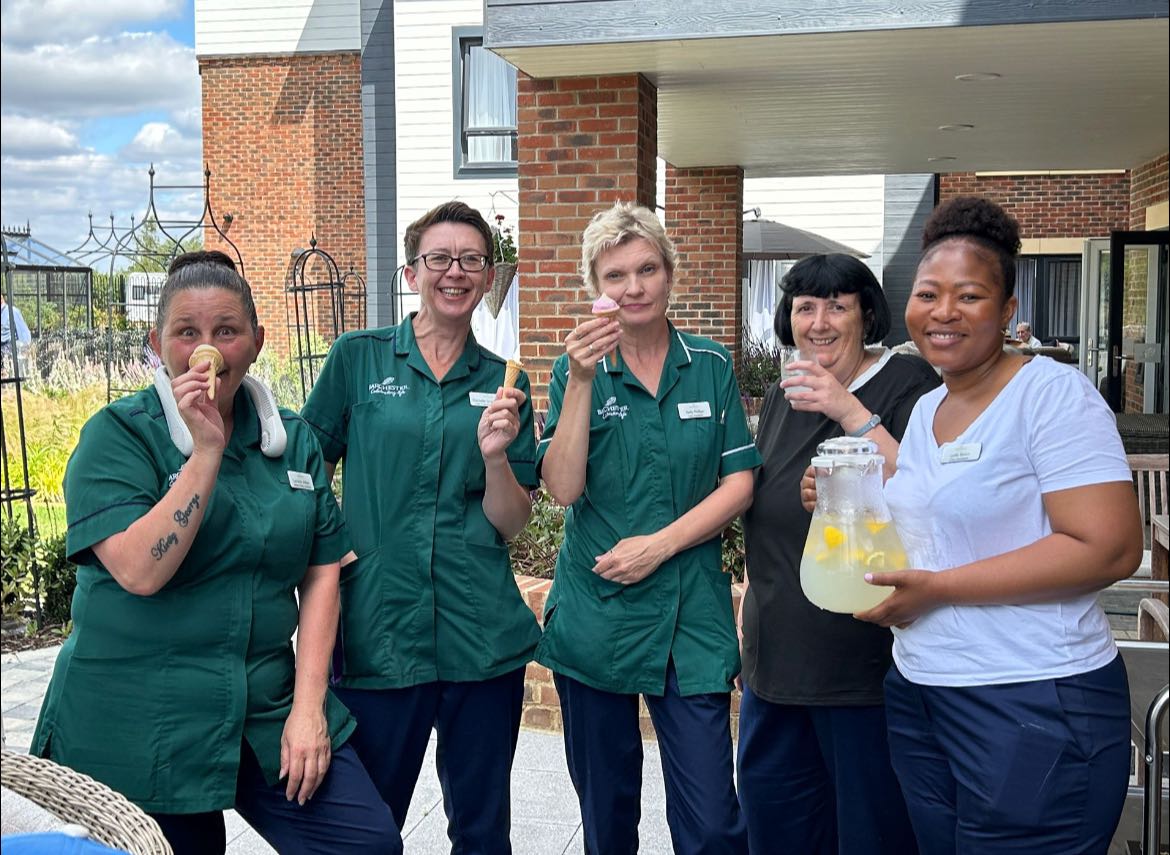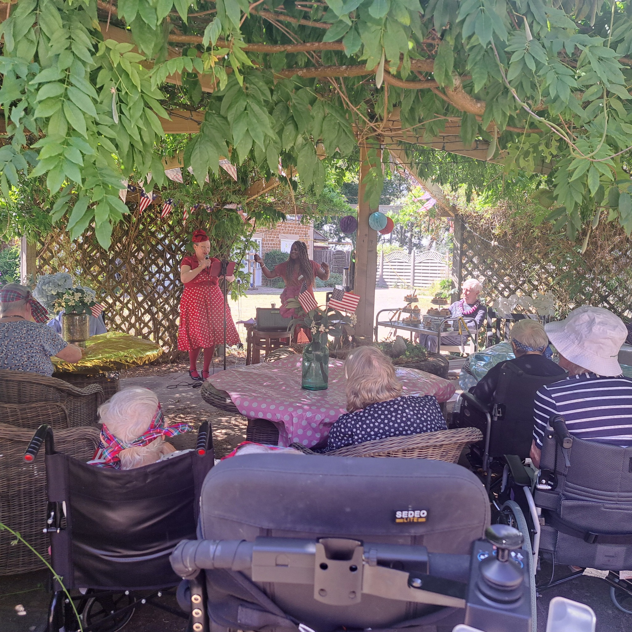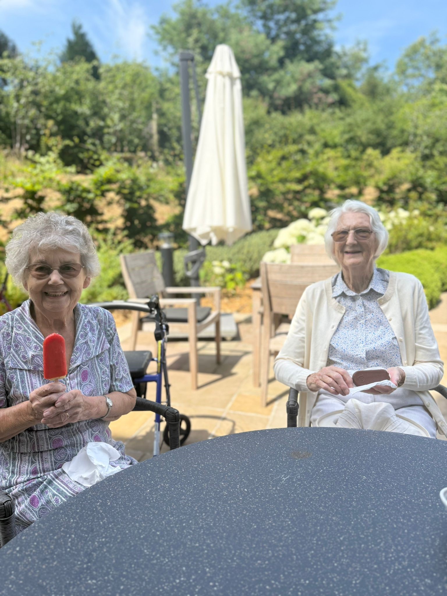 Residents, staff and families were treated to ice cream, fresh fruit and chilled drinks in the shade of the garden.