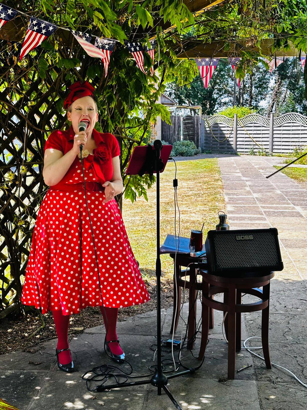 We were joined by the lovely singer Vintage Ruby who sang a brilliant variety of songs from 'Run rabbit run' and 'All around my hat' and in honour of the party theme, and as it's American Independents day too she sang some classic American tunes including 'Achy breaky heart!