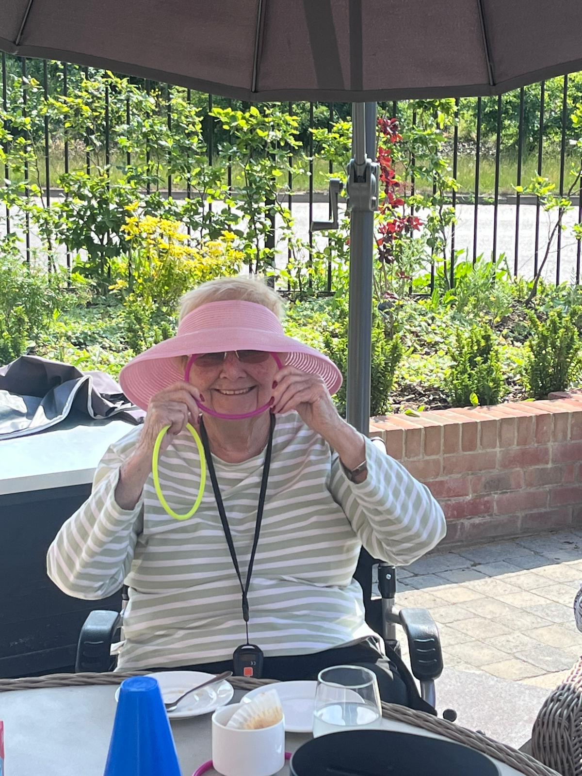 Today we had a Mad hatters themed tea party where by residents, family members and community guests gathered together in the garden to have fun and enjoy the delicious cakes and scones baked by our talented chef Gill.