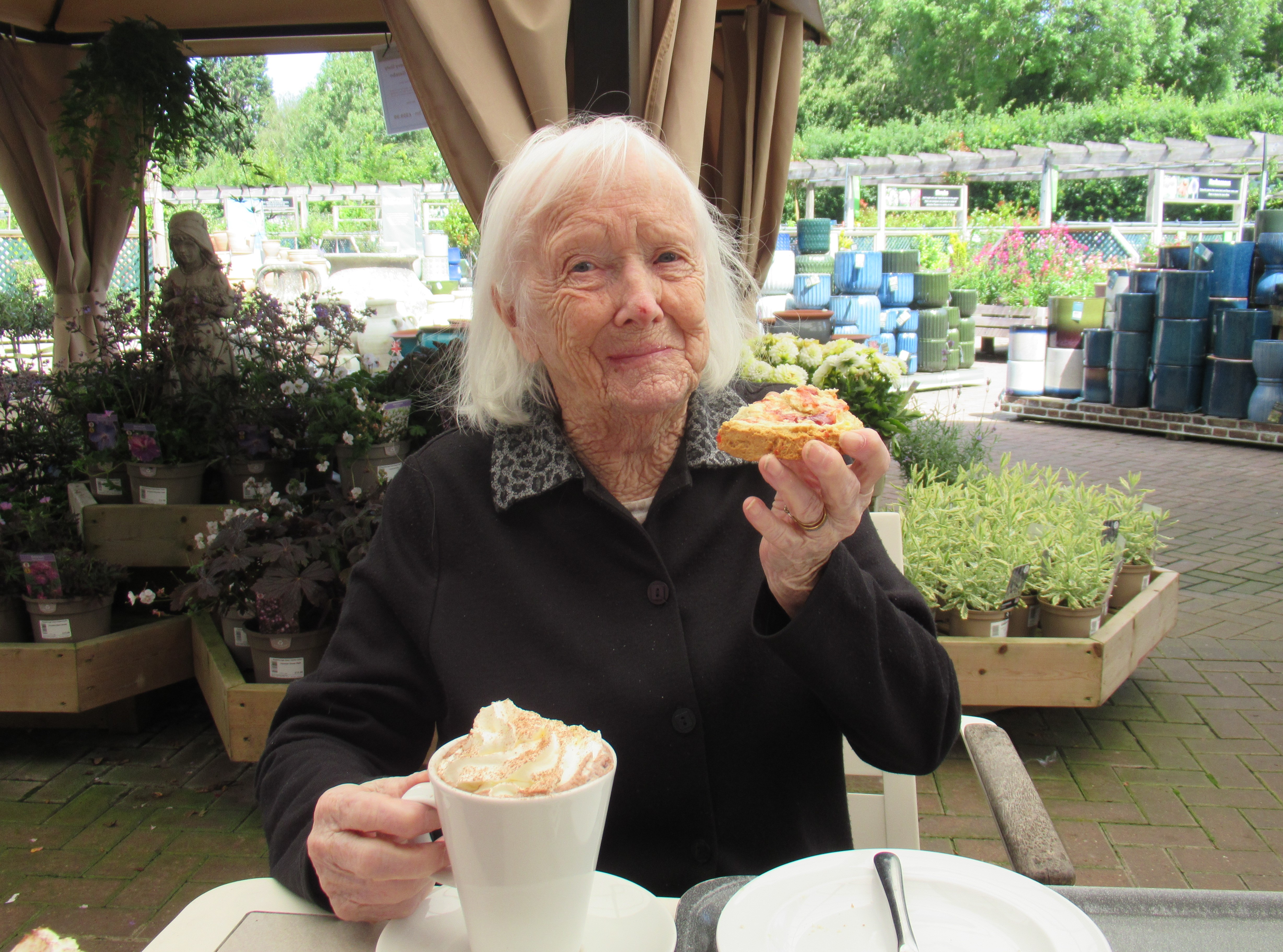 To top off the visit, Joan enjoyed a delicious hot chocolate and a freshly baked homemade scone in the café. She was absolutely chuffed, telling us how ecstatic she felt to be out and about, soaking in the fresh air and colourful surroundings.