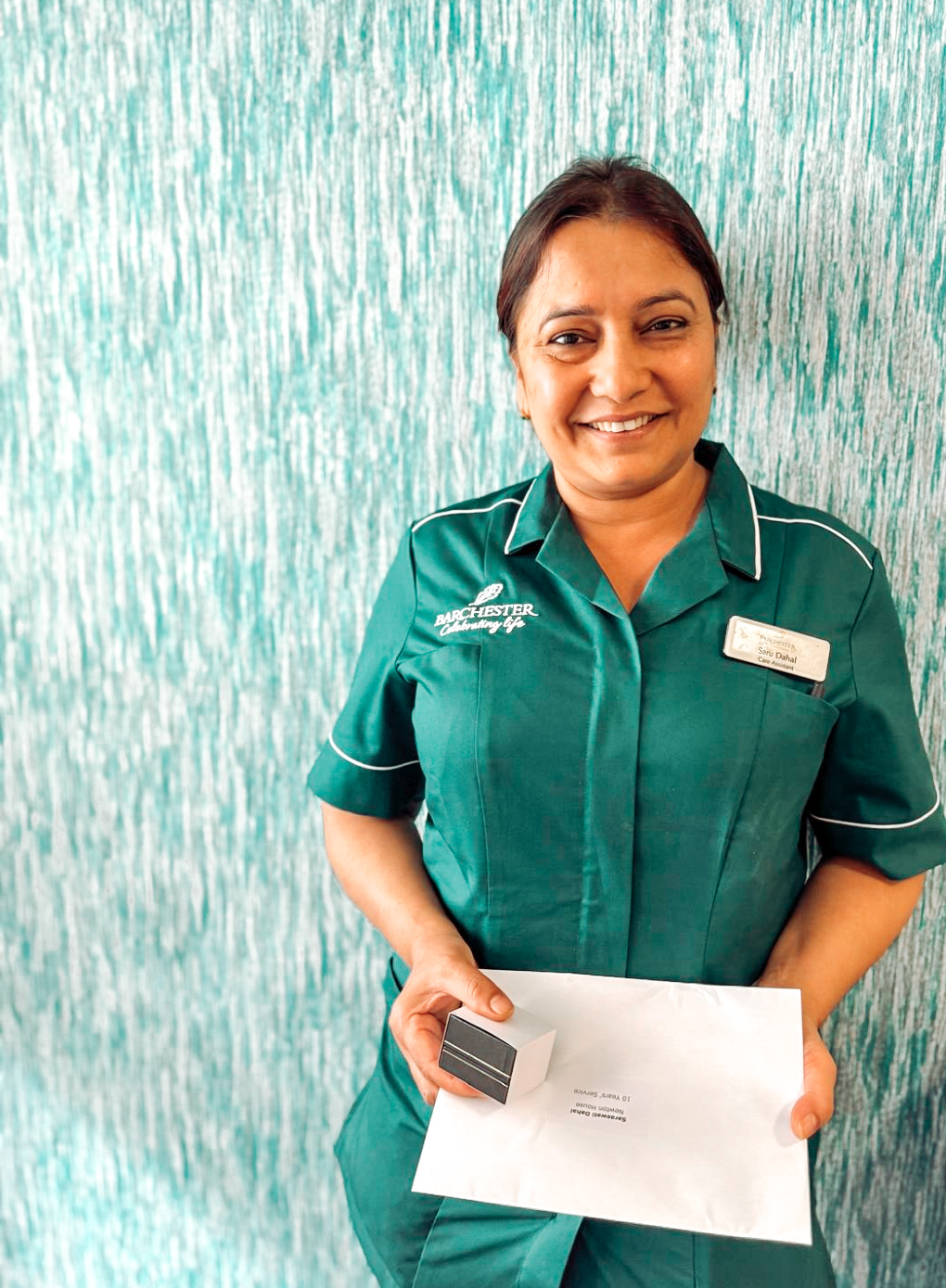 One of our Care Assistants has received a prestigious 10-Year Service Award in celebration of working at Barchester Healthcare for 10 years.