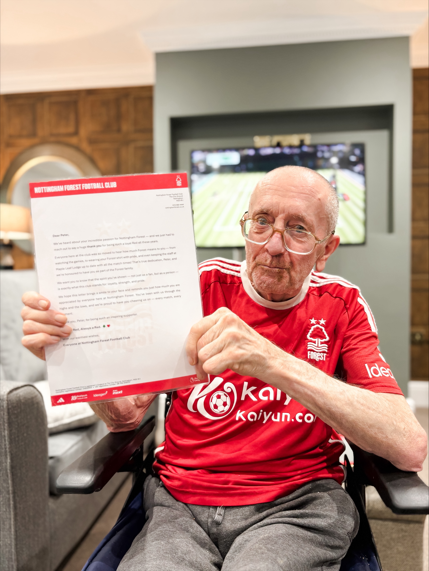 Peter, a resident, had always been a big supporter of the football team, Nottingham Forrest, so the staff at the home made his wish a reality, proving the old adage, it’s never too late.